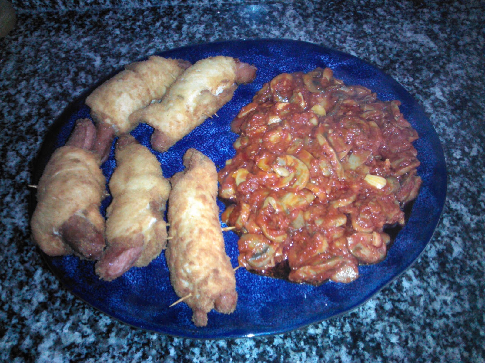 Pasamos los enrollados por el huevo batido, por pan rallado y